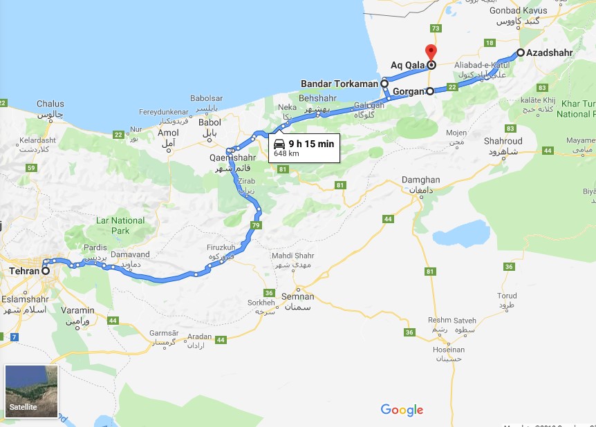 Gorgan to Azadshahr by road (direct distance 77 km)